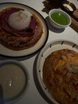 Очень вкусный завтрак с лососем, лепешка с кунжутом просто божественная, с ней можно съесть все! Лосось был свеж и хорош) Греческий пай с оливковым мороженым неплох, но смущал какой-то странный горьковатый привкус на корочке, то ли филотесто прогоркло, то ли оливковое масло. Лимонад Вишня-гвоздика не понравился, ну очень кислый) В общем, по еде претензий нет, но толкучка на входе подпортила впечатление, заходишь, а там не пройти, приходится стоять на улице и ждать, пока все оденутся и выйдут. Столько отзывов про ужасный гардероб, но, видимо, админы уже ждут скорее лето)))