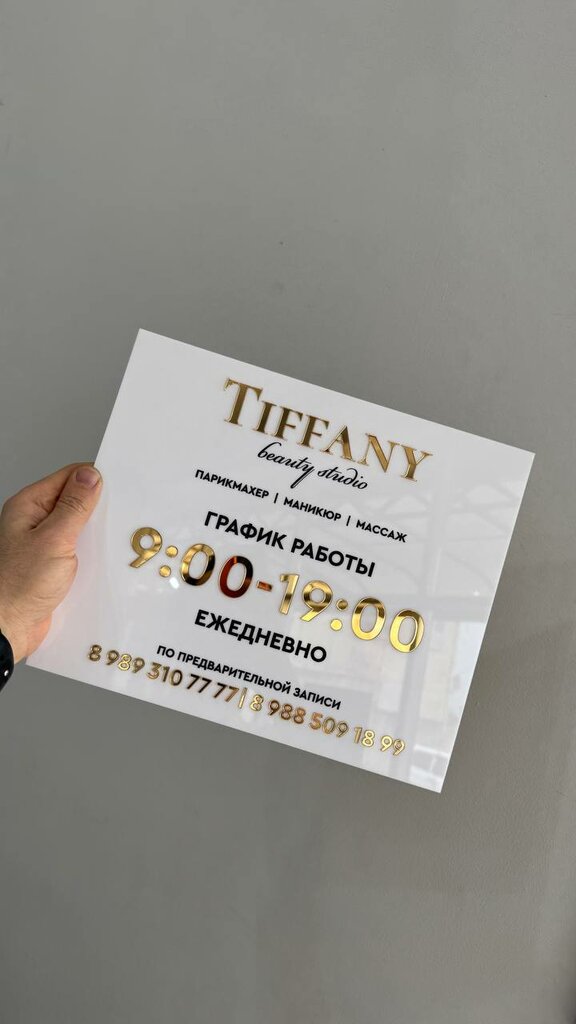 Табличка из акрилового стекла с золотыми псевдообъёмными элементами. Индивидуальный формат по ТЗ заказчика.