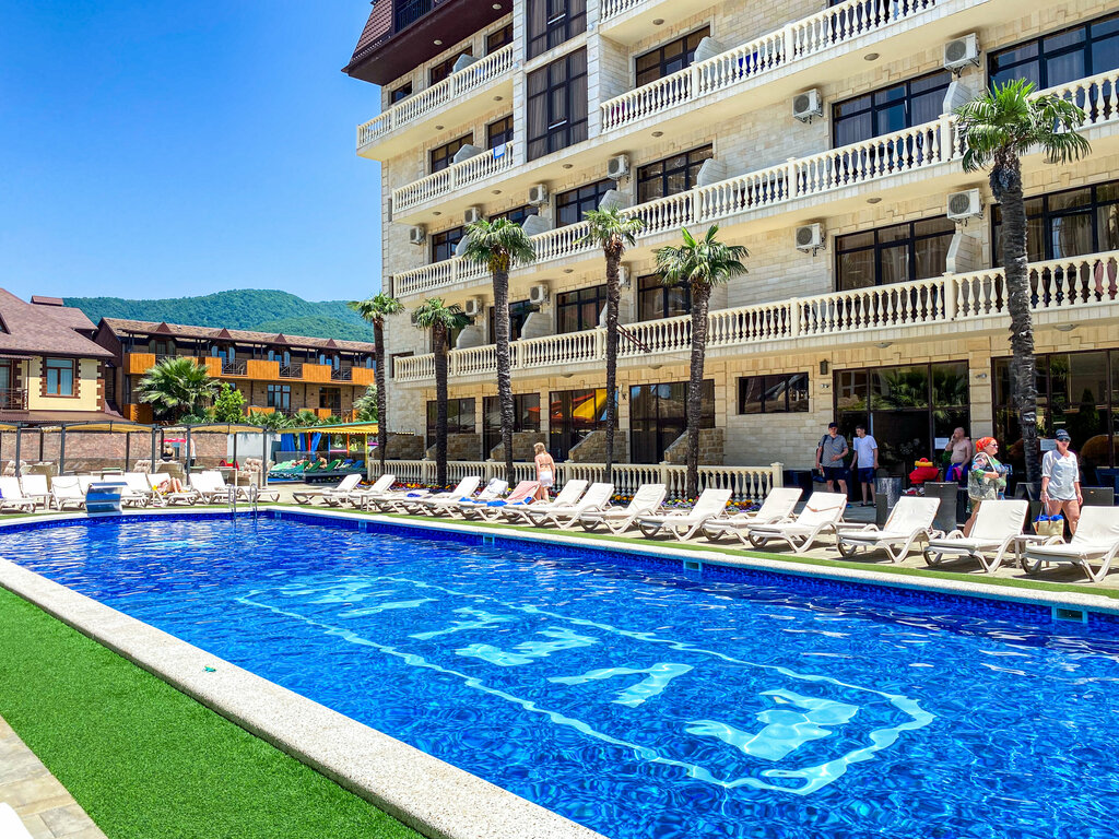 Отдыхаем в этом отеле шестой раз. Это уже о многом говорит! Собственный пляж с лежаками и трансфер в течение дня до моря в Лазаревском большого стоит. Персонал оочень вежливый. Бассейн увеличили, но его и до этого хватало всем, лежаков возле бассейна всегда достаточно всем гостям. Детский бассейн с горками с очень теплой водой и даже для самых маленьких есть тоже бассейн, что очень удобно для семей с малышами. Игровая небольшая, детишки, наблюдала, постоянно в ней играли. Столовая в соседнем здании со скидкой для постояльцев. В баре около бассейна спиртные напитки и вкусные коктейли. Очень удобно-можно заказать с кафе роллы (на удивление вкусные), пиццу, хачапури и многое другое и вам все быстро принесут на хорошей посуде. Под навесами в удобных диванчиках можно сидеть хоть целый день. В целом, рекомендую.