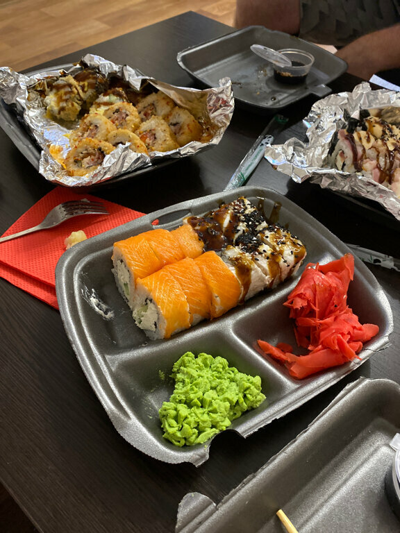 Приветливая девушка на обратной связи, быстрая доставка . Недорого . Вкусно. Но, размер жаренных роллов слишком большой, даже для опытных пользователей 🤭 Рис показался немного переваренным, но думаю, что это поправимо . Спасибо за вечер 🍣🍱🍤🍸