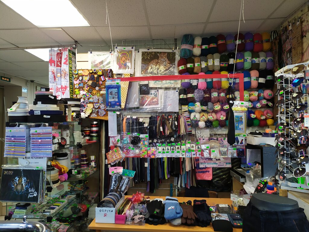Для шитья и рукоделия здесь небольшой островок внутри магазина. Иголки, нитки, резинки, шнуры, декоративная тесьма, молнии. Маленькие наборы со всем подряд. Всегда доброжелательный, вежливый продавец.