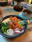 Чистый зал, вышколенный персонал, разнообразное меню и не плохая кухня. Уже не первый раз посещаю заведение данной сети и хочу сказать, что от зала к залу качество обслуживания не меняется. Это не может не радовать. Наполнение зала здесь почти 100% поэтому если собираетесь поужинать лучше заранее бронировать столик. Мы же просто проходили мимо и зарулили на ужин. Повезло, что вип зал был пуст и нас разместили там. Тишина и красота. Дальше о блюдах. Поке было весьма посредственное. Острый соус практически перебил вкус всего люда, а количество рыбы оставило желать лучшего. Куриный суп оказался недостроенным, но досолить не получилось, поскольку все солонки в зале оказались пустыми. Картошка фри тоже не изобиловала солью, но там вопрос был невелирован за счёт соуса. В общем место не плохое, но за недочёты звёздочку сниму