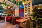 Отличный ресторан для встреч и ужина после шопинга. Приятная атмосфера, стильный современный интерьер с панорамными окнами и уютными диванами. В меню удачное сочетание европейских и азиатских блюд (от пасты и стейков до суши и воков). Порции большие, прещентация красивая. Сервис вежливый и оперативный. Цены соответствуют уровню хорошего ресторана в торговом центре. Из минусов — в пиковые часы (выходные, вечер пятницы) может быть шумновато и нужно ждать столик. Рекомендую попробовать горячие роллы и суп Том Ям.