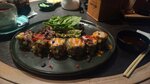 Полная посадка, но ждали всего минут 10 и для нас нашлось место. Даже удалось нас попозже пересадить на место с розетками рядом. Не смотря на полную посадку, обслужили довольно быстро. Официант был каким то сонным. Еле говорил, несколько раз забыл принести нам палочки. Роллы не вкусные вообще. Рис безвкусный, рыба такая же. Перемороженная и тоненькая как бумага. Лимонад и мясо было нормальное.
