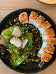 Суши очень вкусные и красивая подача блюд. Девушка официант приятная в общении и обслуживании. Уютная атмосфера в ресторане. Детское меню адаптированное и вкусное. Советую ресторан!
