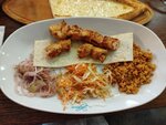 Заказали кебаб и лимонад, кебаб был вкусный,к нему шел лук, который есть было просто невозможно, лимонад за 800 рублей, хоть и вкусный, но из-за плохого сито в стакане скопилась горсть косточек, официант не приходил и никто не убирал посуду
