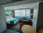 Отличный отель! Останавливались здесь вдвоем, в конце сентября. Взяли апартаменты с кухней 203 номер (стандартных номеров свободных не было). Это было отличное решение: большой, просторный номер. Отличный вид на площадь. В номере было все необходимое: шампуни, гели, зубные щетки, пасты, халаты, фен. Отсутствовали тапочки. Кухня вся оборудована и готова к использованию: сковородки, кастрюльки, столовые приборы, микроволновка, индукционная плита, моющее средство. Также есть чайный набор (2 чая, кофе, сахар). При заезде было 2 бутылочки воды по 0,5. Хорошая уборка номера каждый день. Шумоизоляция на высшем уровне. Под конец нашего проживания в соседний номер заселились довольно шумные дети, но в нашем номере была тишина. Порадовал очень хороший напор воды в душе. Смеситель в раковине немного барахлил. Питание, которое предлагает отель в ресторане Табаско, это полный провал. Стоимость 1200 руб. с человека, заявляют как все включено. У нас питание было не включено, сходили 1 раз вынужденно, т.к. был ранний выезд на экскурсию. Другие заведения в 7 утра все закрыты. Мы пришли в 7:20-7:30. К этому времени часть блюд уже было пустое. Помещение, где располагается раздача блюд, очень маленькое. Найти что то горячее практически невозможно. Еда вся холодная. Иногда выносили, что-то докладывали, вероятно в эти нечастые моменты можно урвать что-то теплое. Кофе сильно забористый. Очень бодрит :D После такого опыта ходили в другие кафе, где очень плотный завтрак на двоих выходил в 1200-1500руб. В остальном отель нам понравился. Довольно приветливая рецепция, всегда готовы помочь, подсказать. В отеле чисто, хорошие номера, ничего не сломано. Во время проживания работал только один лифт, что создавала некоторые неудобства в виде очередей на лифт. Но эта проблема легко решалась подъемом по лестнице :) Самый главный плюс отеля - его расположение. Он находится в САМОМ центре. Прямо под боком Ж/Д вокзал. На ласточке буквально за час можно добраться до Светлогорска, Зеленоградска, Балтийска и т.д. Почти до всех достопримечательностей можно дойти пешком: Амалиенау, Зоопарк, остров Канта, рыбная деревня, Музей мирового океана, музей янтаря, Обертайх, Верхнее озеро, Альтес хаус, Дом китобоя и т.д. Огромное количество кафе и ресторанов рядом: сеть Британика, Брикас, Бранч и боул, дом Техники, штандайм 99, "ДК Закрыто, Входите" и т.д.