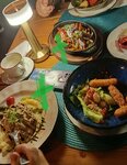 Честно скажу ожидала большего. На мой вкус не все зашло, но это не говорит о том, что кухня плохая. Бефстроганов и сковородочка с мясом и шампиньонами были бесподобны. Все остальное не очень понравилось (особенно наггетсы). И еще один для меня минус это темнота - сплошные места для поцелуев))) за это -1, даже несмотря на то, что нам принесли потом второй светильник. При полной посадке зала - сидели бы в темноте. На фото конечно выглядит, что светло, но это не так. Меню изучали с настольным светильником. Вряд ли придем сюда еще раз