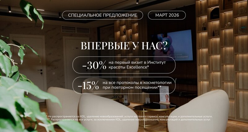 Мартовское преображение: обновите кожу к теплу со специальными предложениями от Excellence! 🍀🌼 ______________ - 30% на первое посещение на...