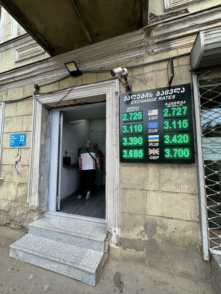 We passed by this exchanger on the first day of arrival in Tbilisi, we noticed a good exchange rate, then it turned out that it was one of the most profitable in the city. The same information was given to us by the guide with whom we subsequently went to Kakheti. Therefore, it was here that rubles were exchanged for lari. They counted everything for us on a calculating machine, they didn't cheat us by a single "penny". Recommend 👍