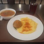Вкусная курица под сыром, оливье вкусный, девушке гороховый суп очень понравился, у меня был куриный, не особо понравился. Цены для столовой нормальные. В целом вкусно поели, но пятерку не могу поставить