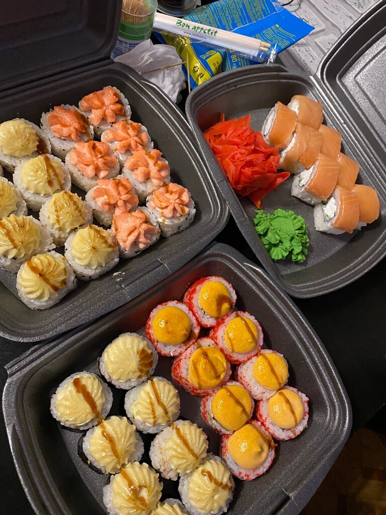 Отличные суши и роллы,большие размеры,сеты увесистые. Доставка не опаздывает. Хозяин сам крутит,поэтому не в его интересах что-то химичить. Администратор умничка,только не улыбчивая,возможно просто скромная.
