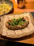 Очень посредственная кухня, сказали из куриной печени с неподходящей заправкой. Римская пицца груша с горгонзолой тоже посредственная, сыра нет совсем. Салат из баклажанов тоже со странной заправкой. Принесли надколотый бокал, в салате оказались кусочки косточек не понятного происхождения. Все очень не очень