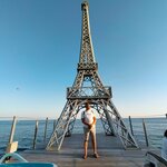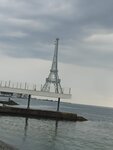 Эйфелева башня стоит на массандровской лучшем пляже в Ялте, гармонично вписывается, очень крутые фото получаются около неё ! Всем рекомендую посетить массандровской пляж 👍