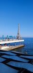 Башня стоит на волнорезе. С берега башню видно хорошо. Вид красивый. Вокруг чисто. Были в январе.
