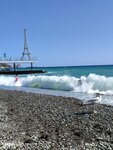 Чистый Массандровский пляж. Есть кафе на пляже. Вангог- вкусная кухня. Фото у макета Эльфиевой башни.