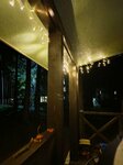 Отдыхали семьей с ребенком в люксе в коттедже. Мы просто в восторге! Территория ухожена, в лесу, рядом чистейшая река. Много беседок с мангалами. В домике места немного, но нам было достаточно даже с учетом раскладушки для дочки. В номере горячая вода круглосуточно из бойлера, вода питьевая прямо из крана. Прекрасная веранда с уютной гирляндой, ели только на ней, мошкара не беспокоила. Отдохнули от мира, перезагрузка полная: интернет слабенький, ТВ тоже не работал (какая-то авария была в пределах района). Для досуга ребенка: шикарная игровая (ключик надо попросить у администратора), две детских площадки, настольный теннис, волейбольная площадка. Мы брали свои велики, катались по лесу, но на базе есть прокат. Уезжать не хотелось, обязательно вернемся!