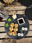 Заказывали через доставку. Приготовили и привезли быстро. Вкусные роллы за вменяемый ценник. Рыбы не жалеют и она вкусная. Пиццу дали в подарок к заказу. Не идеальная, но вполне съедобная и вкусная. Остались довольны. Из минусов пожалуй только одно: Заказывали через яндекс доставку. Оператор когда уточнял заказ попросил телефон "чтобы курьер мог связаться". Курьер доставил без звонка, а вот на следующий день в вотсапе появилось сообщение с просьбой дать обратную связь.