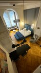 Невероятно красивые апарты с эркером! Были здесь у друзей месяц назад, теперь сняли сами. Приятный интерьер, современный свет разных сценариев, лепнина. Хороший санузел. Кухня: посуда (в том числе для готовки), плита, чайник, кофемашина, мини-холодильник. Вид на Фурштатскую и Кирху. Магазины в пешей доступности. Теперь о минусах. С самым большим, к сожалению, пришлось столкнуться в первую же ночь и это сильно подпортило общую картину. Слышимость с соседним номером была просто 100%. Около часа ночи пришли соседи, большая и громкая компания: разговоры, смех, нецензурная лексика.. Я написала в поддержку - нет ответа. Позвонила - нет ответа. В прихожей табличка с правилами проживания. Запрет курения и решим тишины с 23:00 до 7:00. Меж тем шел второй час ночи.. Тут в ватсап, видимо, проснулся администратор, принесла извинения и пообещала что-то предпринять. Так как слышимость идеальная, я слышала, как она постучалась к соседям, и деликатным шепотом попросила быть потише, мол, вы мешаете соседям. На что был вопрос, только им мешаем? (Видимо, был жест в сторону нашего номера), на что администратор ответила да. Сосед пообещал быть потише. После того, как дверь закрыл, видимо, сообщил своей компании о произошедшем. Они решили, что будет весело начать стучать в стену, разделяющую наши номера, и пооткрывать металлическую заслонку печи. Может хотели посмотреть, кому это они там мешают))) не знаю))) Короче, это было максимально неприятно. Для меня очень важен хороший сон. И если из-за чего-то с этим возникает проблема, всё остальное, к сожалению, меркнет. Я понимаю, что слышимость в таких домах - обычное дело. Как вариант - выдавайте гостям беруши, например? И про правила проживания: если уж заявляете их, то и контролировать это нужно как-то иначе. Судя по голосам, народу там было явно больше, чем 2-3, это были гости. Для комфорта других проживающих (особенно учитывая слышимость) не лишним было бы ограничить время приема гостей. Для ночных посиделок есть заведения соответствующие. Или личные кухни. К слову сказать, две следующие ночи было тихо, шумная компания выехала и никто на замену не въехал. Остальное - мелочи, но тоже можно было бы подумать над ними. Вода питьевая была только в день заезда. О режиме уборки я уточняла, когда на второй день уборщица не забрала мусор. Это тоже можно же как-то обозначить до возникновения проблемы. Пишите в ватсап при заселении, чтобы это не становилось проблемой в моменте. В эркере дискотечно мигала одна лампочка. А правый светильник над кроватью в ночи в выключенном состоянии мелко вспыхивает каждые несколько секунд. Сценарий света на любителя)) В целом, очень красивый вариант, нюанс со слышимостью и поэтому лотерея с соседями. Сервис не уверенный, на мой взгляд, можно это улучшить.