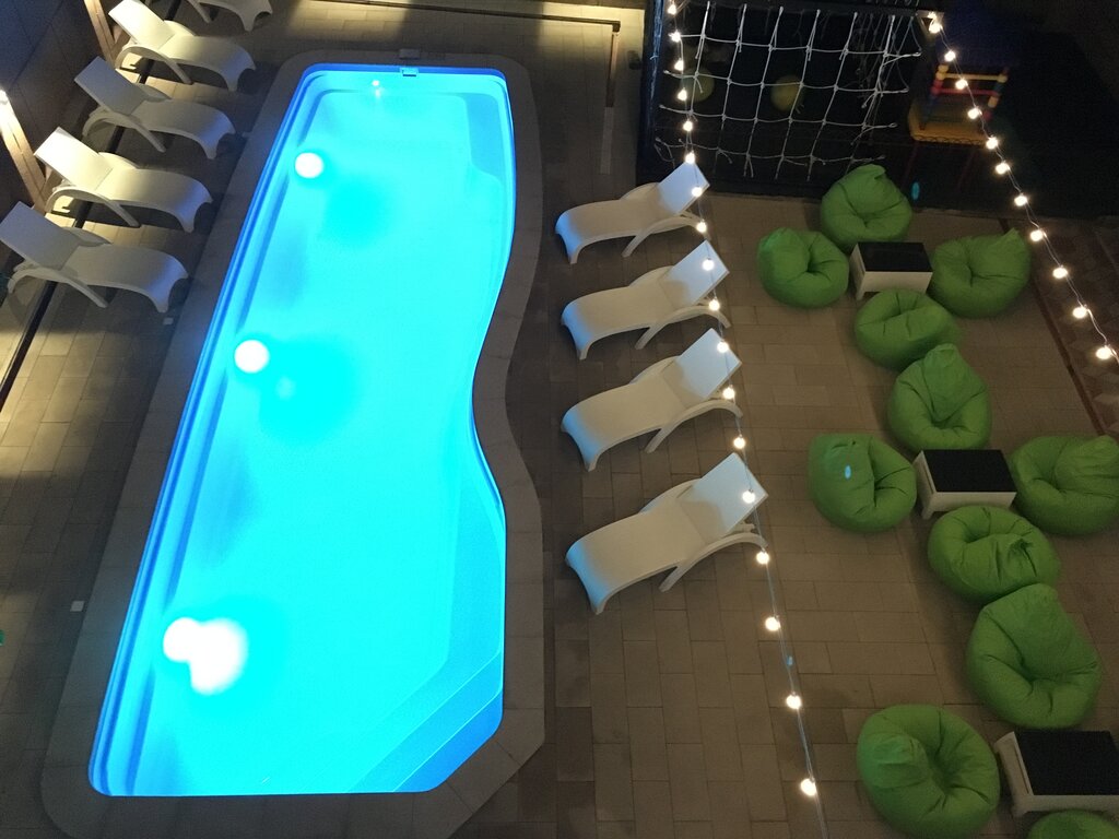 Очень понравился отель, все чисто, красиво. Наталья приветливая, на все вопросы отвечает, все объяснила и показала. Бассейн довольно большой, всем хватает места.До песчаного пляжа минут 15-20 спойным шагом через парк, где есть тренажеры спортивные, в теннис можно поиграть, если взять ракетки. До галечно-песчаного пляжа, с красивой набережной минут 20-25 спокойным прогулочным шагом(мы ходили через частный сектор, гораздо короче дорога).