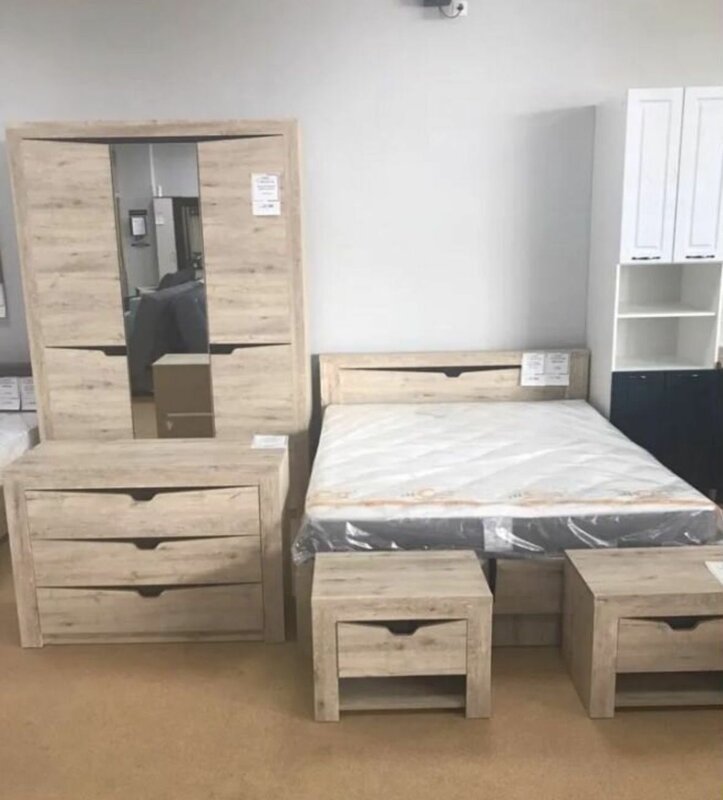 Акция на спальню до 30,04.2025. В стоимость входит кровать 160х200 с ортопедическим основанием, тумбы прикроватные - 2шт, комод маленький на 4 ящика, шкаф 3-х створчатый с зеркалом. Есть возможно приобрести в двух цветах (Дуб сонома, Бодега белая)