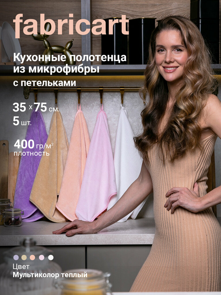 Салфетки универсальные из микрофибры fabricart kitchen для уборки дома, кухни, размер 30*30, 5 шт.