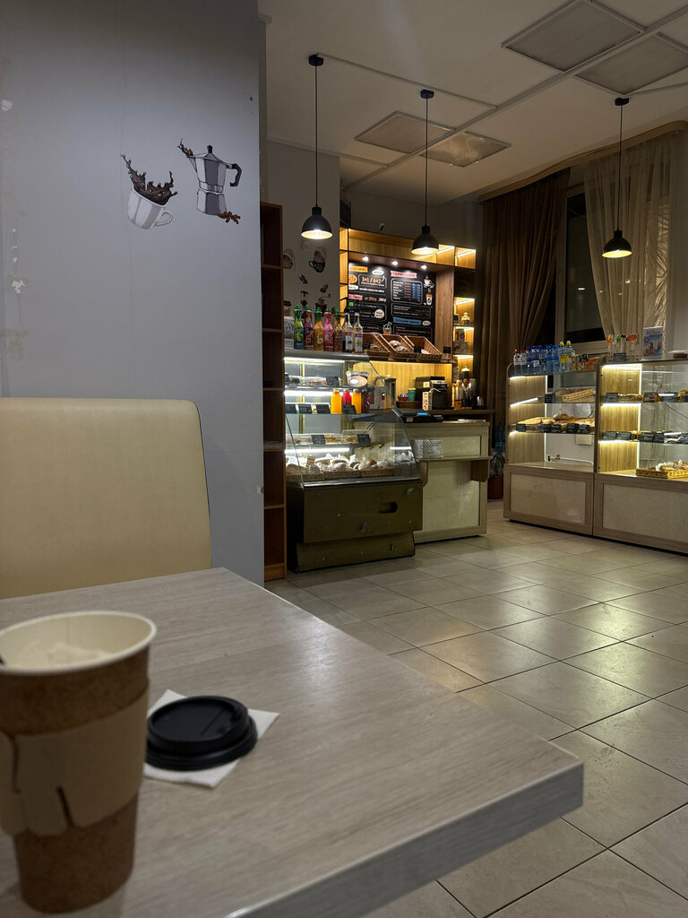 Кафе снаружи - привлекает, когда заходишь внутрь помещения - удивищся красотой и элегантностью хлебов, булочек и тд, а запах наиприятнейший, свежий ароматный сдобы совмещённый с карамелью, сладостями и пряностями что в итоге невероятно будет вкусно попробовать, перекусить с кофе или с чаем , одно только удовольствие и всё из за того что прекрасно хлебобулочное изделие приготовлено профессионалами