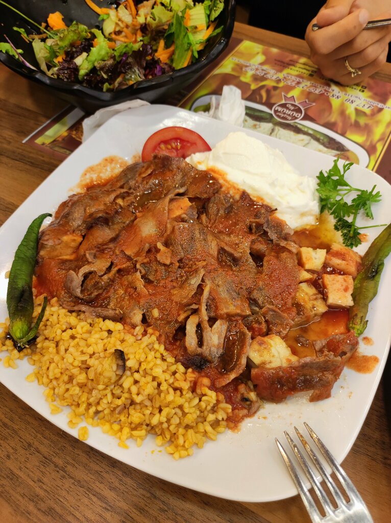 If you are in Ankara, be sure to visit this place. Great atmosphere. The food is delicious and the price is reasonable. When they sat down, they immediately brought salads, French fries and several appetizers, and after they had already ordered food, after the main course they brought dessert and ice cream, and most importantly, it's all free, you only pay for the food that you ordered, salads, fries, desserts are all free. We ordered a couple of dishes and paid about 800 liras