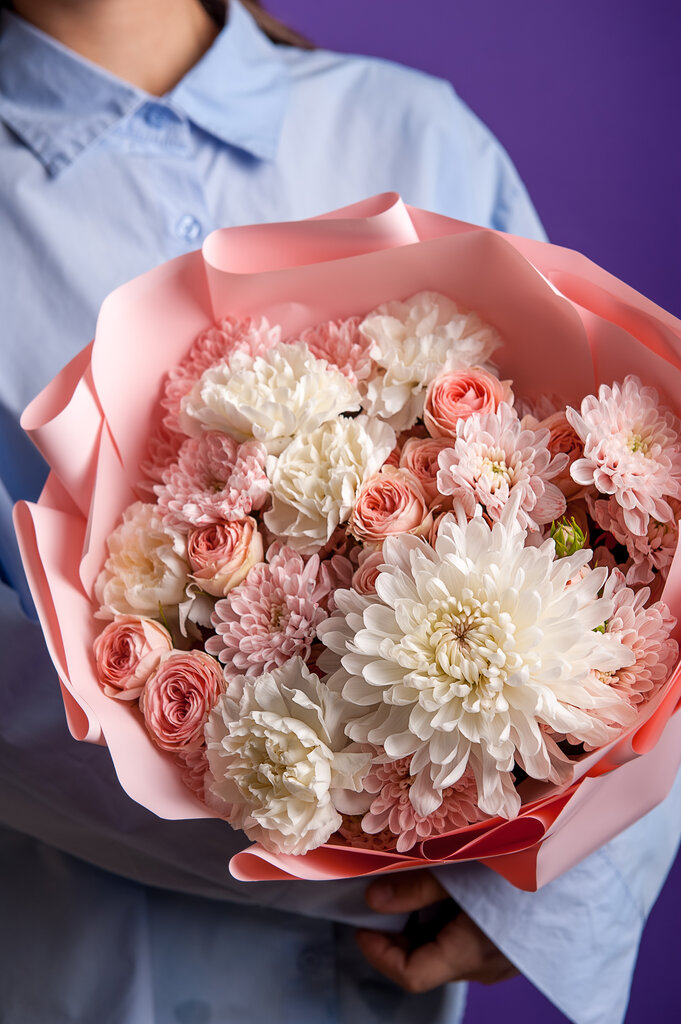 Очень нежный и красивый букет сделали , помогли выбрать и подобрать , флористы очень вежливые и доброжелательные , в магазине очень больной выбор цветов , на любой вкус и цвет 😍