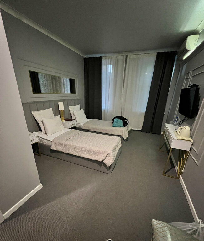 Бронировали номер стандарт с 9 на 10 мая. Отель выбирали по расположению, нужен был именно этот район, и просто прийти переночевать. Но если бы выбирали снова ночи 2-3 все равно выбрала бы здесь снова. Так как приезжаем не в номере сидеть, а гулять. С персоналом никаких вопросов не было - пришли, зарегистрировались, нам дали ключ, оставили вещи, вернулись ночью переночевать; утром отдали ключи и всё. Никакого негатива, ни с чем таким не столкнулись. По номеру: белье чистое, полотенца чистые, гель для душа, шампунь, зубной набор, одноразовые тапочки, ложка для обуви - это было. В номере было тепло; никаких запахов не было. При входе сразу был шкаф с 5 или 6 вешалками внутри, и одна прикроватная тумбочка, больше шкафов не было. Но нам было и не надо, хватило. Еще был столик прикроватный, как для ноутбука можно использовать и был пуфик. Вид был на дорогу, но было вообще не шумно. Все что я слышала утром, когда кто то в коридоре дверь закрывал. Соседей тоже было не слышно. С сантехникой в номере все в порядке; ничего не текло; не сломано. Был телевизор и кондиционер - этим мы не пользовались, но если важно кому-то наличие, то они есть. До метро по карте вроде недолго, но сами не ходили. Машину можно припарковать либо перед отелем, либо есть парковочные места за ним. Рядом есть много магазинов, есть новый классный торговый центр Кузьминки молл, там хороший Фуд корт и много разных магазинов. Минус был один - это грязный ковролин, именно в каких то пятнах. Ну мы конечно не брезгливые, но в целом думаю можно это как то привести в порядок. Еще не было фена, халатов - но я не знаю должны ли они быть в этой категории номера; поэтому не вписываю это в минус, просто для сведения пишу, для тех кто будет читать отзывы, если захочет забронировать номер в этом отеле. Для меня отсутсвие фена не было неожиданностью, так как я брала свой. По итогу: для своей цены, и своей категории отель замечательный. Если вы любители ко всему придраться и ожидаете за такой ценник супер лакшери отель - наверное у вас что-то не то с восприятием цены-качества 😄 Для тех кто ищет место чтобы переночевать на пару ночей, когда приезжают погулять, или по работе - рекомендую. Да и в целом понравилась стилистика отеля, серо-бело-бежевые цвета, современный дизайн.