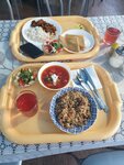 Приличное кафе: набор блюд стандартный, но порадовала куринная грудка, запеченная, с сыром: вкусно, даже ребенок сьел с удовольствием. Манты не понравились: были сухими, без мясного сока. Это и понятно: их готовят заранее, а потом подогревают. Солянка на троечку. Обслуживание быстрое: принесли все в течение 10 минут. В кафе чисто. Выпечки уже не было: мы были в кафе в, 16.30- 17.00