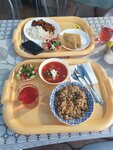 Отличное кафе. Еда вкусная, порции большие и приятные цены. Заказ приносят быстро, в кафе чистота. Есть летняя веранда. Заказывали плов, салат витаминный, окрошку морс и чайник травяного чай. Можно оценить так: Плов 5 Салат 5 Морс 5 Чай 5 Окрошка 4-
