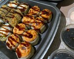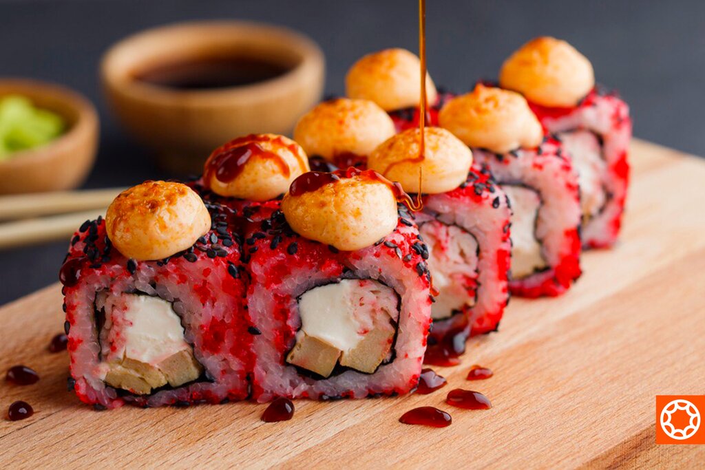 Variety of food:sushi and rolls, pizza, сhinese food, fixed meal, ossetian pies, baking, grill, sweets, home cooking