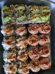 Ужасные роллы! Заказали первый раз и это был наш последний заказ в этой организации. Во первых сами по себе не вкусные,во вторых шапочки на роллах это сплошной майонез подкрашенный васаби или соевым соусом. Кроме майонеза там остального мало. Начинка с тунцом была не свежая, тунец был уже чуть ли ни серого цвета, хотя должен быть розовый. Размер роллов маленький. Фото с номером заказа прилагаю, чтоб потом не говорили что отзыв не правдивый. Я вообще не понимаю за что хвалят эту организацию ,либо не ели нормальные роллы ,либо отзывы накручены.
