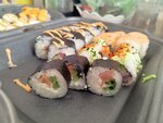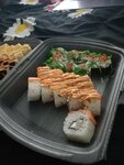 За свою цену в этом ресторане отличные роллы👍 Заказывали с небольшой опаской из-за старых отзывов, но опасения слава Богу не подтвердились. Роллы аккуратные, ничо не разваливается, запах аппетитный. Запеченные роллы пришли горячие, что очень приятно, учитывая, что мы заказывали на левобережье. Всё было вкусно, если уж совсем придираться, то жареные роллы были жирноваты, но тут уж на вкус и цвет, на то они и жареные роллы. На счёт сервиса. Диспетчер вежливая, отвечала на множество уточняющих вопросов корректно. Курьер хоть и была очень уставшая (мы заказывали ночью уже, было видно, что человек забеганый), но говорила очень вежливо, помогла развернуть упаковки, чтобы мы смогли проверить заказ. За доставку мы не платили, нам предложили вместо этого купить пиццу, она тоже оказалась довольно вкусной, с тонким тестом как я люблю, не пожалели ветчины, так что вышло не сухо 👌