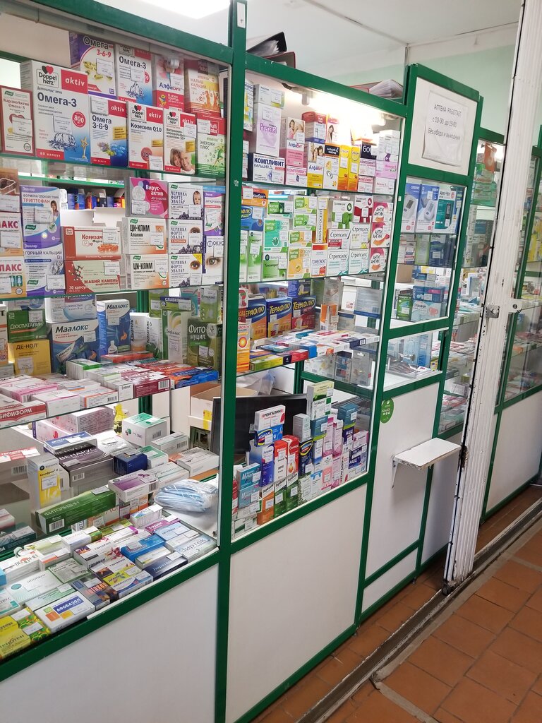 Маленький киоск, ассортимент небольшой, если нужно что-то большее, чем бинты или Цитрамон, то лучше ехать в нормальную аптеку.