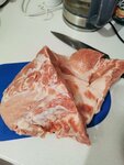 Купили шею свинины, как изначально казалось. По приезду домой выяснилось, что кусок был аккуратно и красиво сложен в пакет. А выгодный срез как раз был открыт. По итогу купили карбонат с ужасно жирным куском.