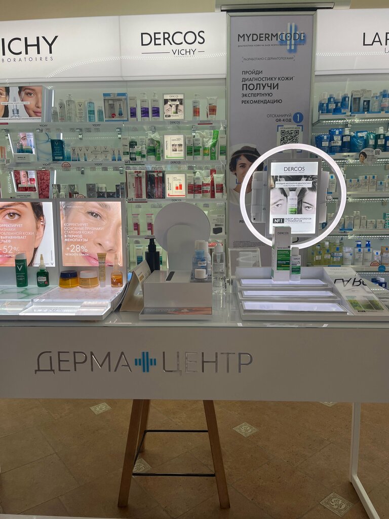 Красивая чистая аптека, ассортимент товара превосходный ,большой выбор средств ухода за кожей и волосами французских аптечных брендов. Можно пройти диагностику кожи и волос бесплатно , получить консультацию по подбору средств, есть тестер-зона. . Вежливые и участливые сотрудники аптеки !