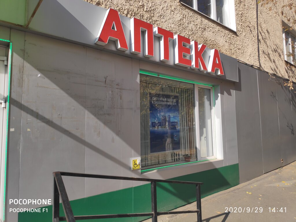 Здравствуйте. У аптеки имеется удобный вход, невысокое почищенное от снега крыльцо, возможность для людей с ограниченными возможностями или детской коляской. Просто, но аккуратно внутри, пожилому человеку есть возможность при необходимости присесть. Главное достоинство считаю грамотный совет в подборе прапаратов и бадов которые не противоречат рецептам врача. Помогают соориентироватся по ценам, достойно хранят звание фармоцевта.