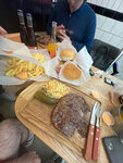 Очень вкусные бургеры, 10/10, добавить просто нечего. Подают с солёным огурчиком на железном подносе, весьма приятная подача. Вкусные морсы Единственный минус для меня - очень огромные. Даже самый маленький по весу сложно съесть тем, кто мало кушает за раз 😹