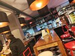Хотелось бы больше мягких диванов или мягких стульев. Места по бокам сделаны в виде диванчиков и напротив небольшие круглые столики. Большую часть занимают прямые деревянные столы с металическими барными стульями в виде открывашки. Нас было трое и мы сели за деревянные столы, чтобы было больше места для еды. Не очень удобно забираться на эти стулья, больновато сидеть. Сперва не поняли где делать заказ, оказалось прям при входе в заведение. Бургеры вкусные мягкая булочка. На столиках стоят бесплатные соусы кетчуп и горчица. Еда понравилась, цена на бургеры от 500-700 рублей в зависимости от наполнения. По готовности заказа, издается громкий звук и высвечивается ваш номер на табло. Народа в воскресенье в районе 17:00 не очень много было, потихоньку подтягивались компании ближе к вечеру. Кондиционер работал, но из-за открытого окна, функцию он плохо свою выполнял. Для посещения туалета, нужно сделать заказ и на чеке будет код. Данный код нужно ввести при входе в туалет. В туалете много воды на полу и грязновато. Бумага разбросана у урны и урна забита. В целом заведение уютное. Фотографии в карточке товара соответствует действительности.