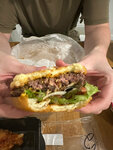 Не был здесь больше полутора лет, зашел за вкусным бургером - не получил ожидаемого. Тут кто-то уже писал, что котлеты стали как-будто из обычной говядины, в которое добавили очень много жира, ни на какую мраморность это не тянет, плюс изжога после такой еды. Блю чиз бургер почему-то теперь имеет чайную ложку бобчиза (соуса, речь не про сыр дор блб, который в его составе), и очень много горчичного соуса, который там не к месту. В целом как бы ну посредственно, только цена как за что-то нормальное. Как итог - врятли я сюда еще зайду, и однозначно перестану рекомендовать. Ну картошка была ничего:)