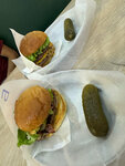 Очень вкусные, сочные и большие бургеры, еще и к каждому кладут по огурчику. Персонал вежливый, приготовили быстро, еще и собственная зона, где можно посидеть