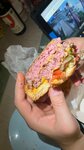 Вот так по мнению поваров заведения выглядит well done. Муж очень просил нормально прожарить, потому что я жду ребенка. Не понятно почему это так сложно сделать. Сколько не проси всем пофигу. Повариху даже спросили, когда забирали пакет велл дан ли это? И повариха и менеджер сказали «ДА!ДА!» И это не первый и единственный случай. На последнем фото разрез переделанного двойного чизбургера. Он такой же сырой. А у мужа уже болит живот и метеоризм. Ну не едим мы сырое!
