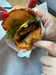 Бургеры вкусные, готовят достаточно быстро. Понравился "Сосед по даче ". Главный минус - периодически разогревают мясо, а не готовят свежее - два раза так попадал - вижу, что повар просто берет ранее готовую котлету, чуть греет и выдает(( не надо так(