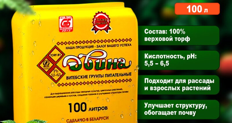 Торф верховой Двина 100 литров ph 5.5-6.5