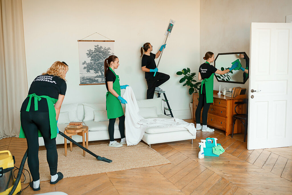 Types of cleaning:wet cleaning, general cleaning, ironing service, disinfection, daily cleaning, comprehensive cleaning, window cleaning, cleaning after repair, cleaning after construction, vacuuming, one-time cleaning, urgent cleaning, current cleaning, dry cleaning of upholstered furniture, facade washing, steam generator cleaning, before discharge from the maternity hospital