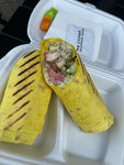 Шаурма с курицей, пекинской капустой, свежим томатом, маринованным огурцом и соусом на выбор