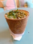 Взяла суп грибной, с тыквенными семечками Очень вкусный суп!!! , объема хватает чтоб быть сытым Стаканчики съедобный, тоже вкусный Сфоткать изначально не подумала, успела остатки скананчика запечатлеть Однозначно буду ходить когда туда рядом
