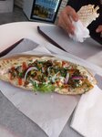 Готовят очень вкусно, постоянно стоит очередь. Цены адекватные. В лепёшках с мясом и сыром, много начинки